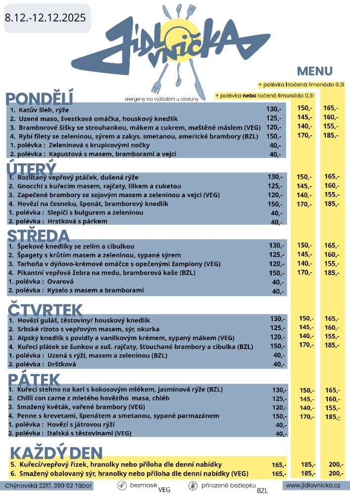 Jídlovnička nabízí rozvoz jídla pro firmy v Táboře.